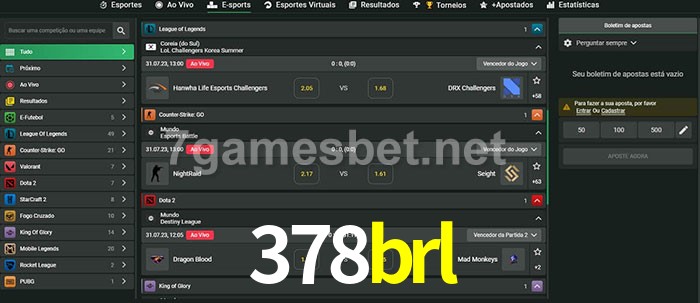 O 378brl oferece uma grande seleção de opções de apostas em e-sports com probabilidades competitivas
